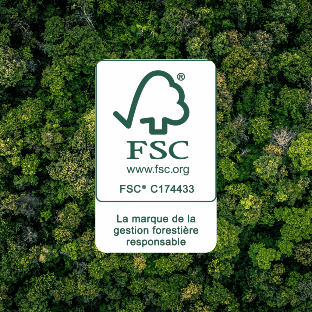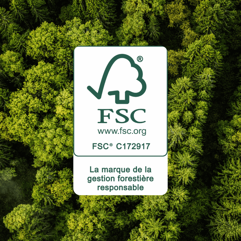 La certification FSC® garantit que nos produits à base de bois proviennent de forêts gérées de manière responsable. En choisissant nos produits certifiés FSC®, vous contribuez à la préservation des ressources forestières mondiales.
